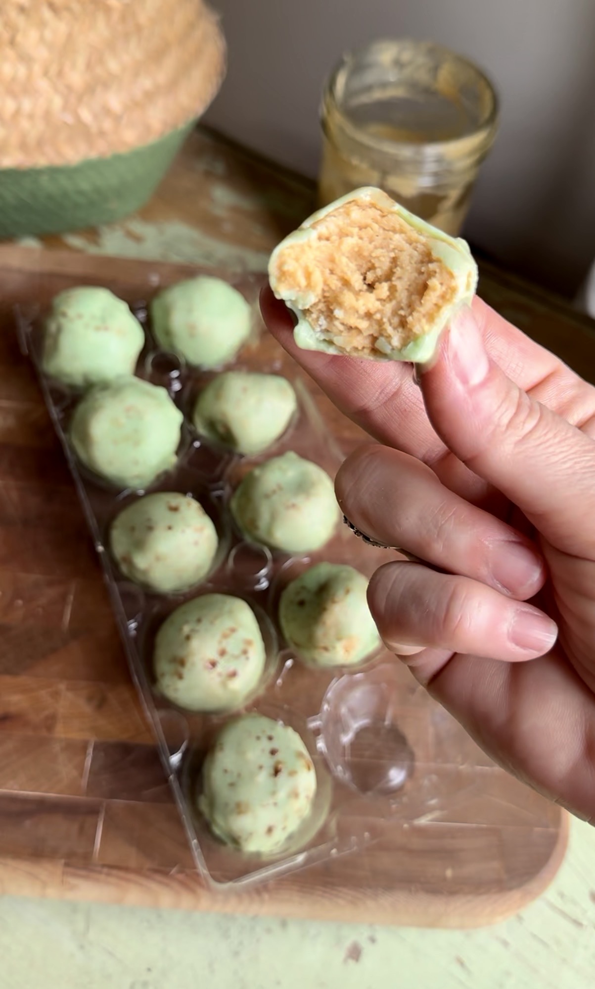 - Once the mixture is combined and thick, form into 10 even balls. Freeze until solid.